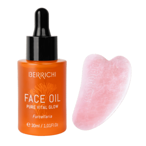 The Natural Beauty Duo set includes Pure Vital Glow Facial Oil and a rose quartz Gua Sha stone.
